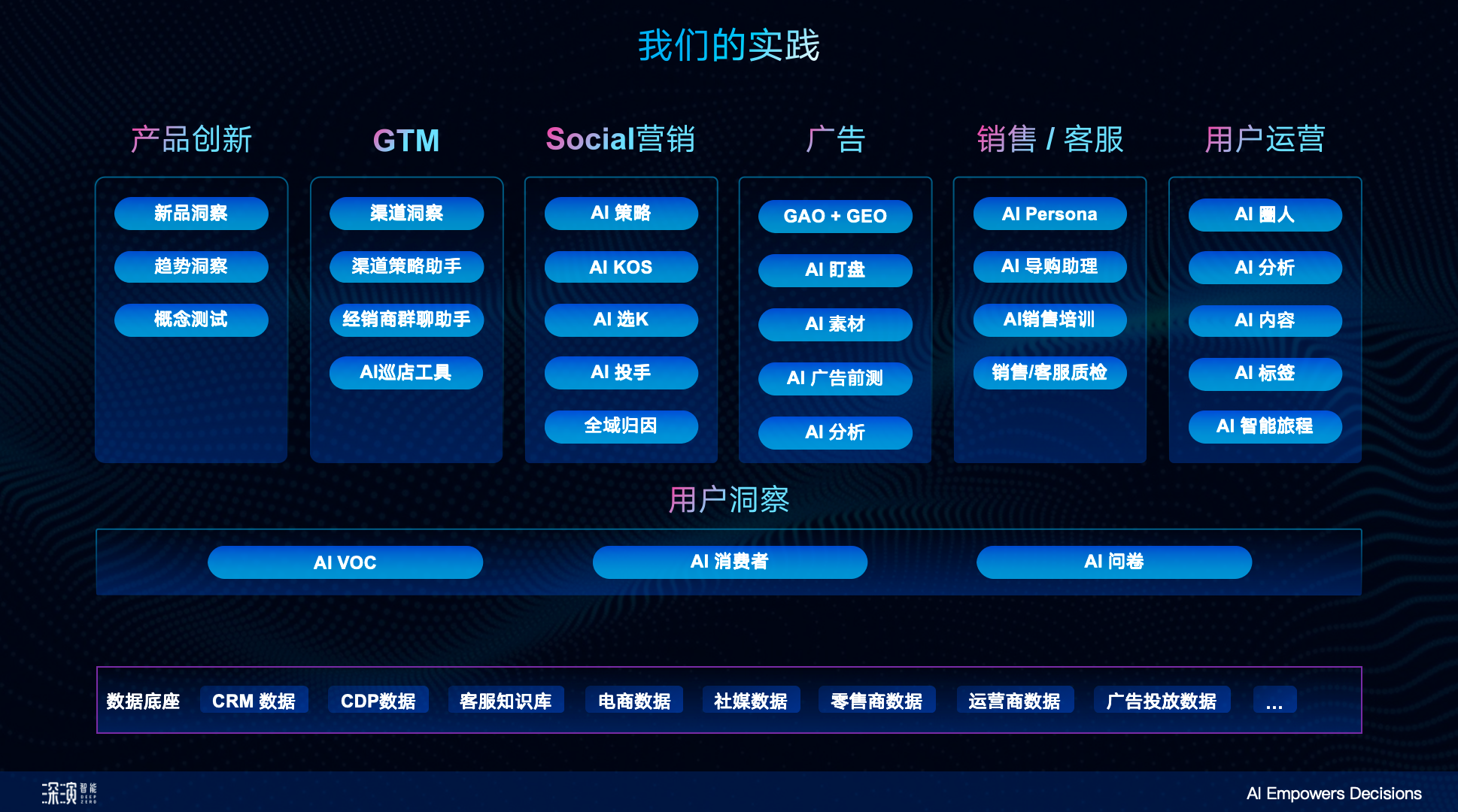 如在销售场景,智能体对销售线索的个性化培育和精准转化,可实现“一人一策”;在Social内容营销领域,能够从策略、内容、达人到投流、归因,全链路由AI赋能,使营销效果可量化、可优化;CRM/用户运营领域能结合营销自动化平台(MA)支持AI个性化内容生成和智能旅程;以及在客户之声(VOC)与洞察、消费者调研、AI广告、AI搜索与优质语料优化等场景都推出了创新的AI智能体应用解决方案。
