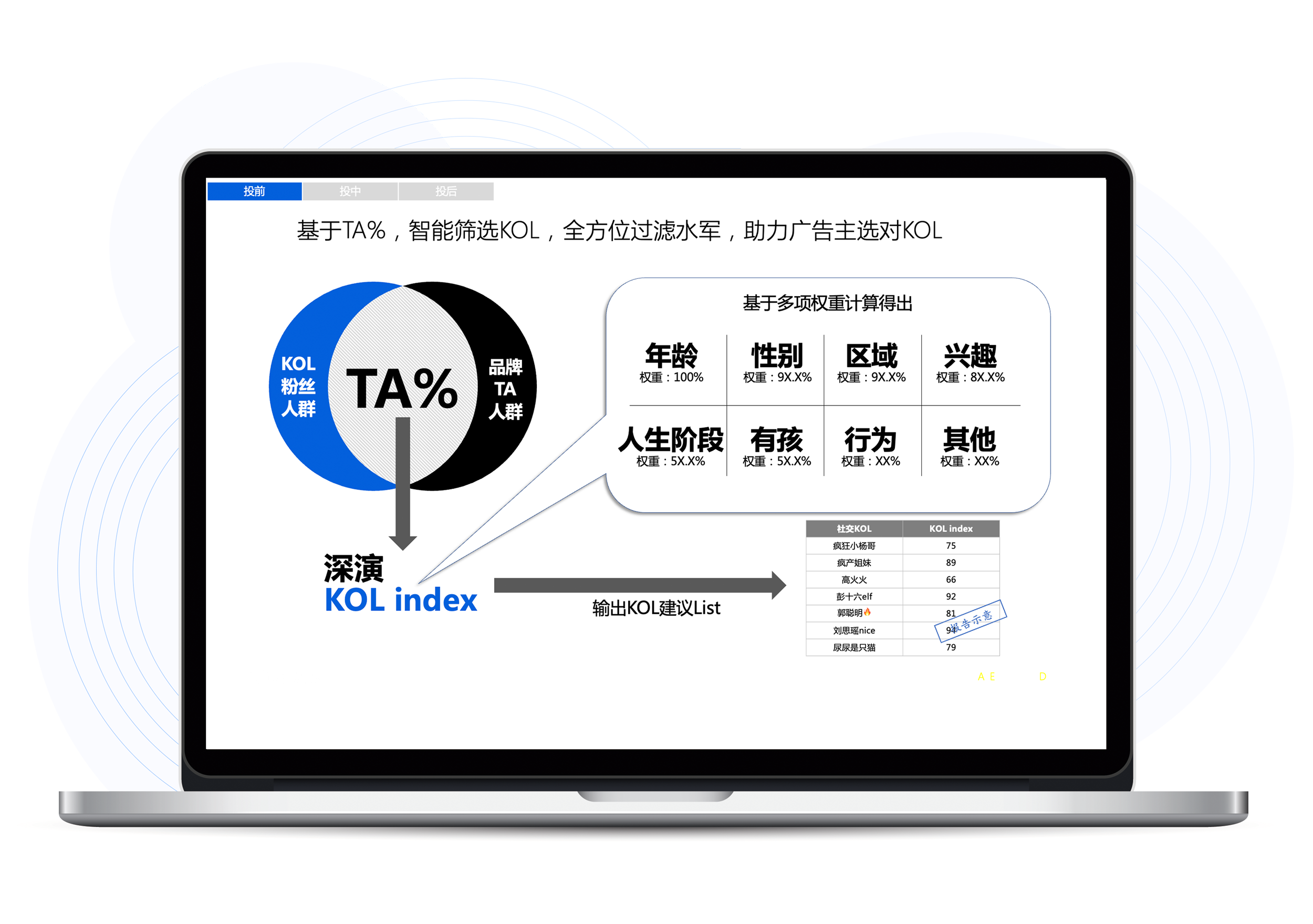 腾博会K参谋科学前选可以跨领域找到最能影响品牌目标人群的KOL进行投放,同时有效平衡投资回报率